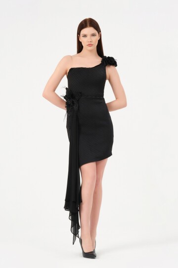 Çiçek Detaylı Pileli Mini Elbise - 1553