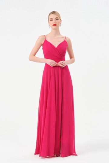 Askılı Drapeli Kruvaze Yaka Elbise - 1524