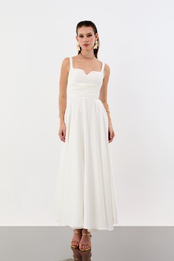 V Yaka Drapeli Yüksek Bel Midi Elbise - 1952