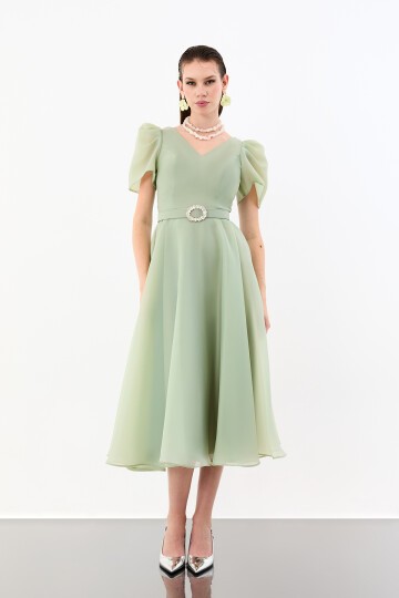 Volümlü Kol Detaylı Şifon Midi Elbise - 1958