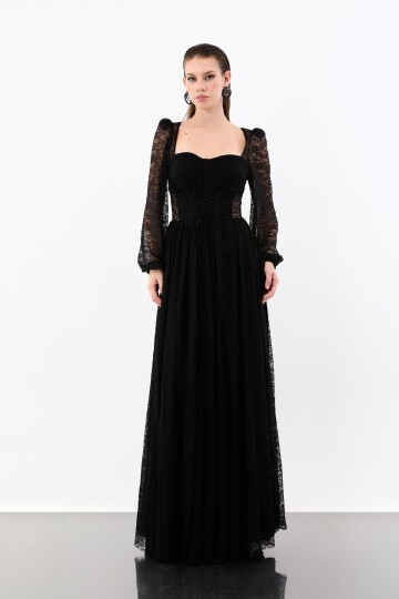 Korse Detaylı Dantelli Yırtmaçlı Elbise - 1946
