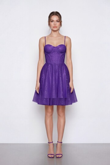 Simli İp Askılı Korse Detaylı Mini Abiye - 2081