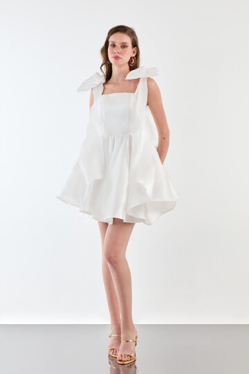 Omuzları Fiyonk Detaylı Mini Elbise - 1812
