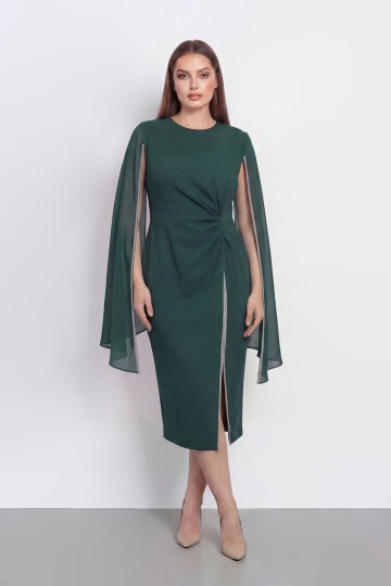 Pelerin Detaylı Drapeli Şık Midi Abiye - 2118