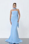 Taşlı Kemer Detaylı Halter Yaka Midi Elbise - 1970