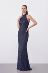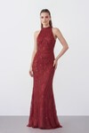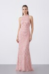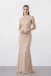 Tamamı İşlemeli Halter Yaka Uzun Abiye - 2137