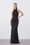 Halter Yaka Taş İşlemeli Yırtmaçlı Elbise - 1847