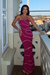 Taş İşlemeli Straplez Midi Elbise - 1846