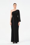 Tek Omuzlu Taş Detaylı Midi Elbise - 1477