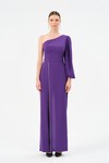 Tek Omuzlu Kayık Yakalı Yırtmaçlı Midi Elbise - 1816