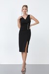 Kol Detaylı Yırtmaçlı Midi Elbise - 1582