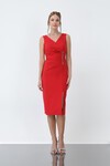 Drapeli Omuz Detaylı Midi Elbise - 1506