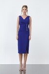 Taş Detaylı Kemerli Midi Elbise - 1626