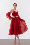 Dantel Dokulu Straplez Midi Abiye - 2115