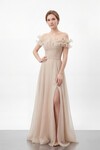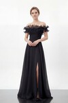 Drapeli Omuz Açık Yırtmaçlı Uzun Abiye - 1496