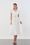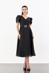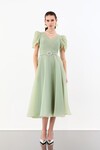 Balon Kollu Kemer Aksesuarlı Midi Abiye - 1621