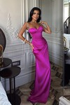 Straplez Payetli Yırtmaçlı Elbise - 1762